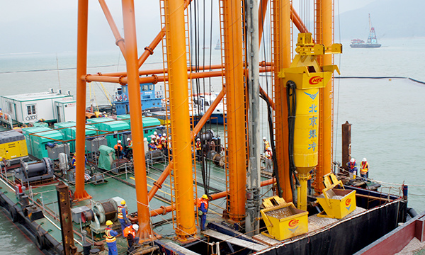 振冲器的核心组件是一组配重的偏心块,当电机带动高速转动时,产生强烈的水平振动。一套振冲器由振冲主体和一定长度的延长杆组成,以满足不同深度的处理要求。振冲设备一般使用吊车悬吊,或与其它钻机配套安装使用。